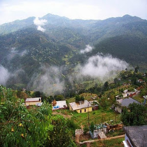 Almora is located at 29.62°N 79.67°E.[2] It has an average elevation of 1,651 metres (5,417 feet). It is located on a ridge at the southern edge of the Kumaon Hills of the Himalaya range. In the shape of a horse saddle shaped hillock, it is surrounded by thick forests of pine and fir trees. Flowing alongside the city are rivers of Koshi, (Kaushiki), and Suyal (Salmale). The snow capped Himalayas can be seen in the background. Almora got its name from "Kilmora" a short plant found nearby region., which was used for washing the utensils of Katarmal Temple. The people bringing Kilmora were called Kilmori and later "Almori"and the place came to be known as "Almora.